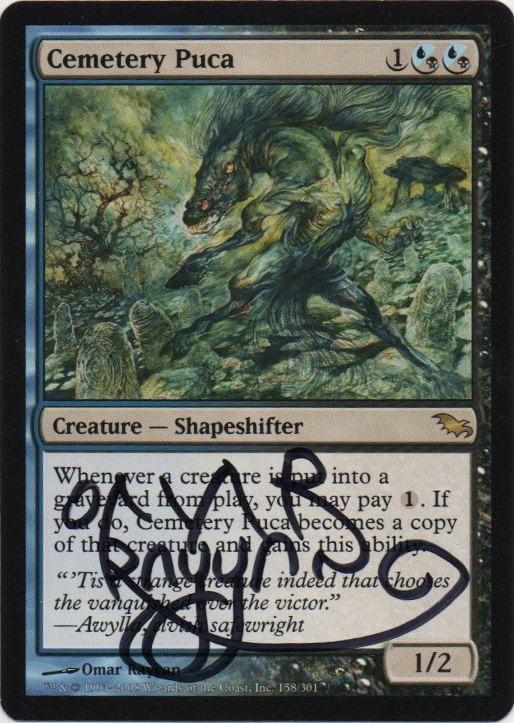 Whenever a creature is put into a graveyard from play, you may pay (1). If you do, Cemetery Puca becomes a copy of that creature and gains this ability.