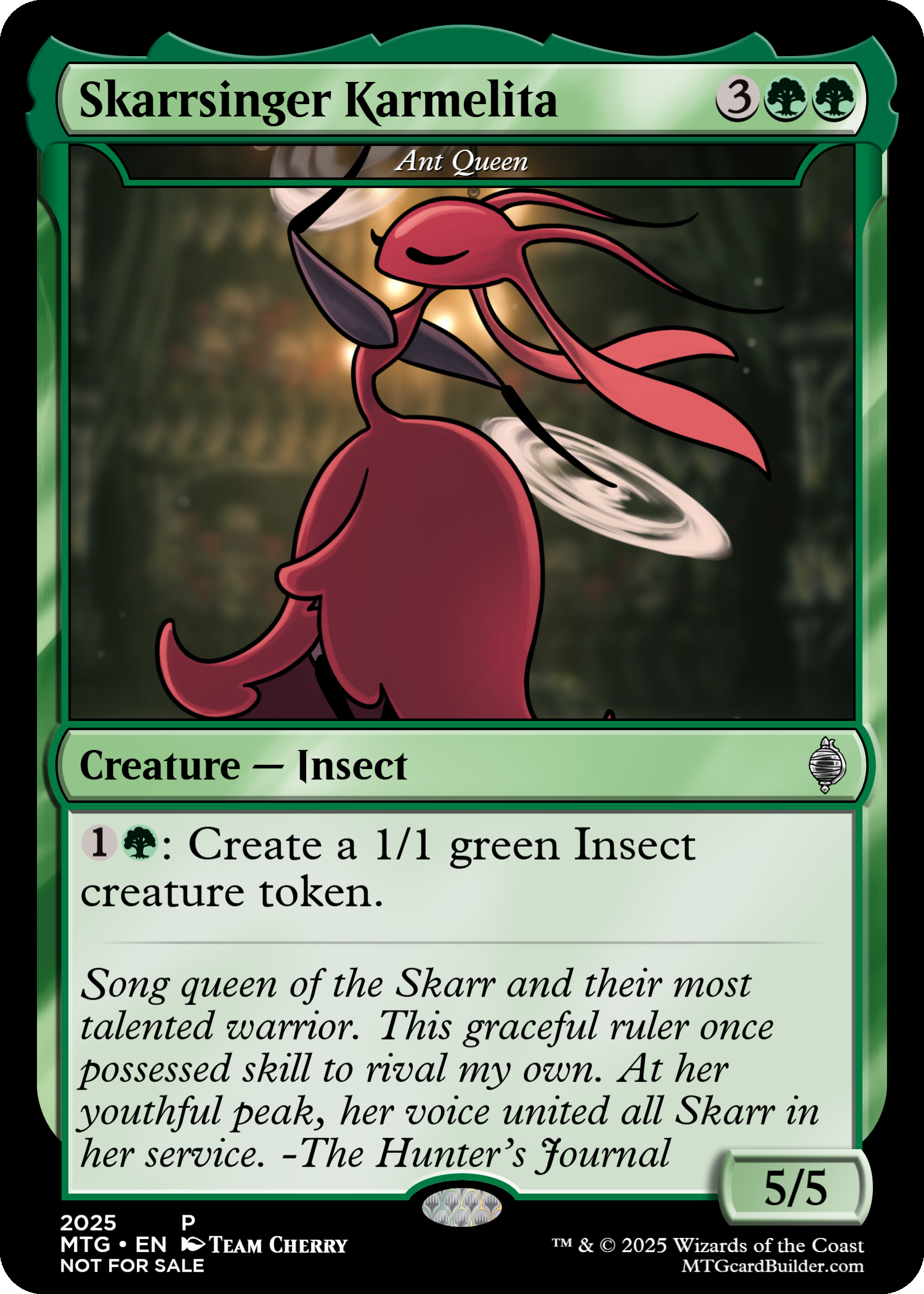 : Crete a 1/1 green Insect creature token.