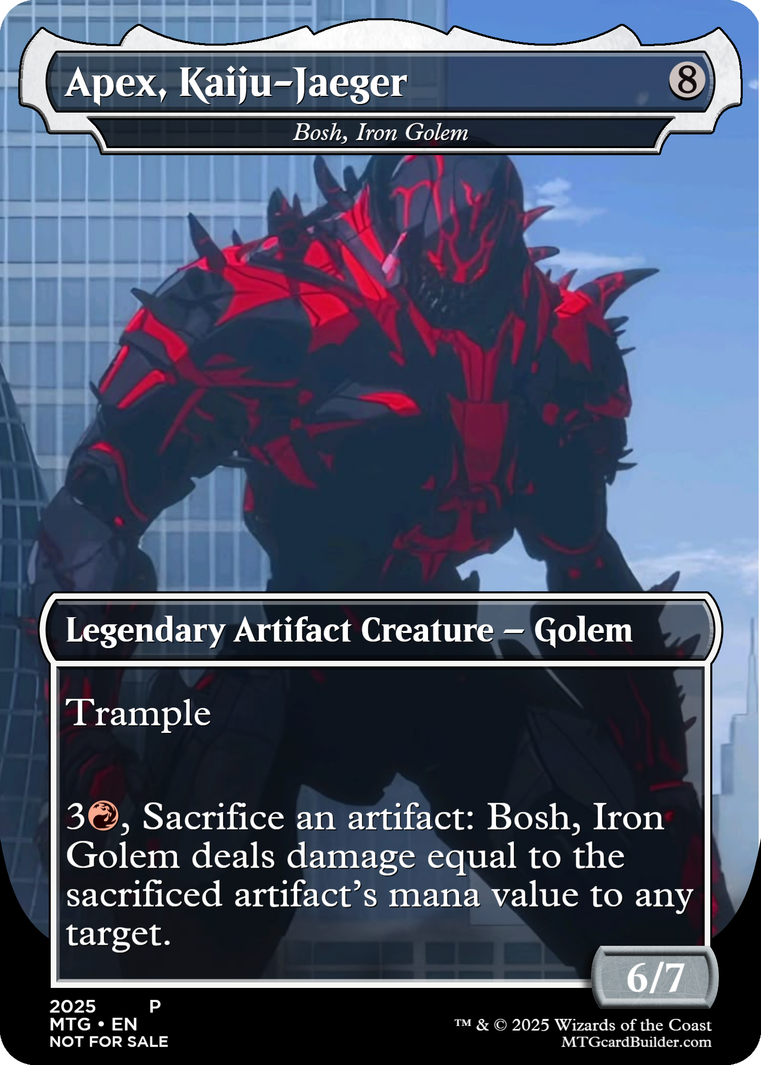 , Sacrifice an artifact: Bosh, Iron Golem deals damage equal to the sacrificed artifact's converted mana cost to target creature, player or planeswalker.