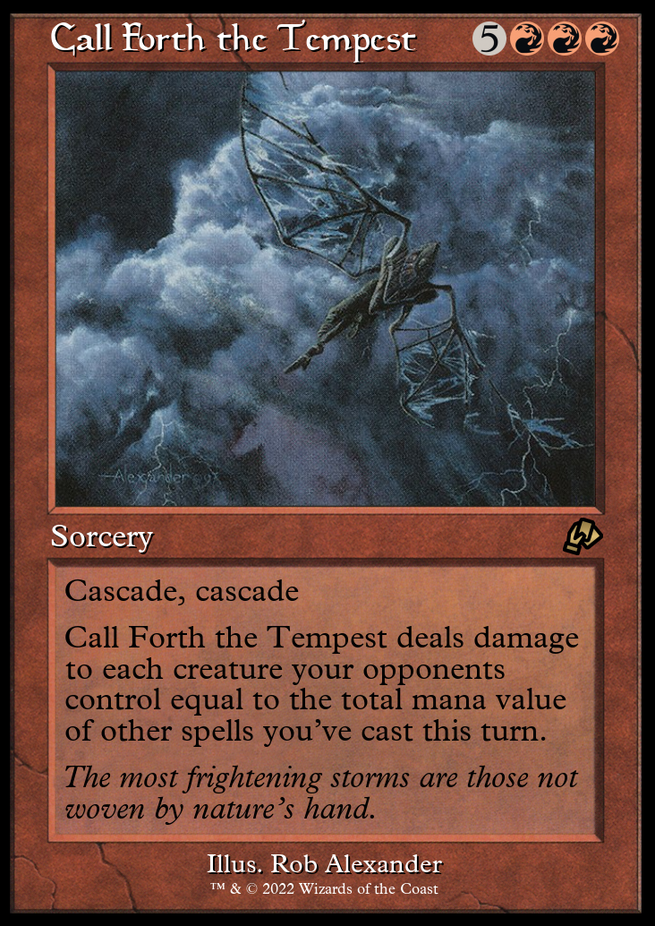 Call Forth the Tempest deals damage to each creature your opponents control equal to the total converted mana cost/mana value of other spells you've cast this turn.