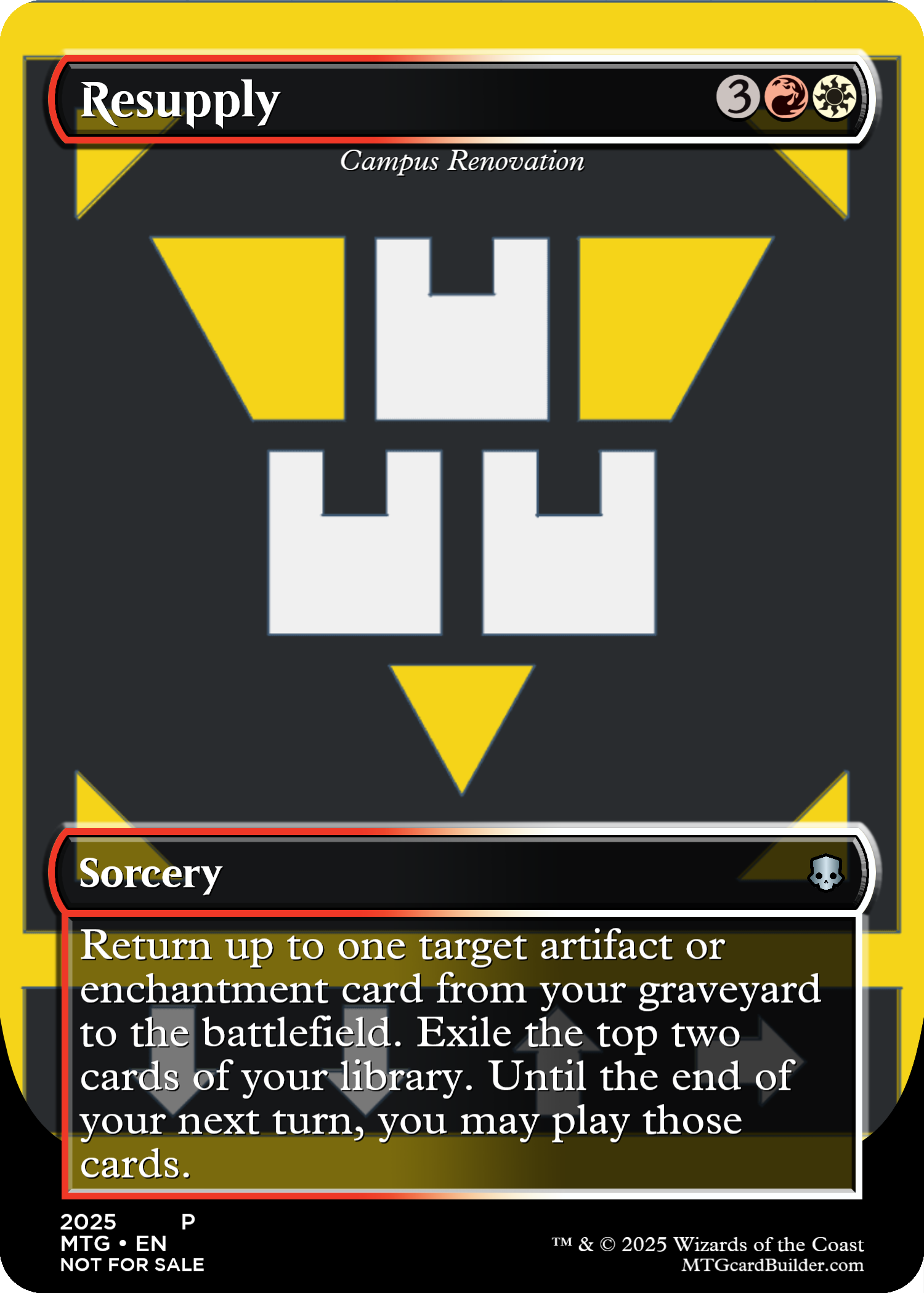 Return up to one target artifact or enchantment card from your graveyard to the battlefield. Exile the top two cards of your library. Until the end of your next turn, you may play those cards.