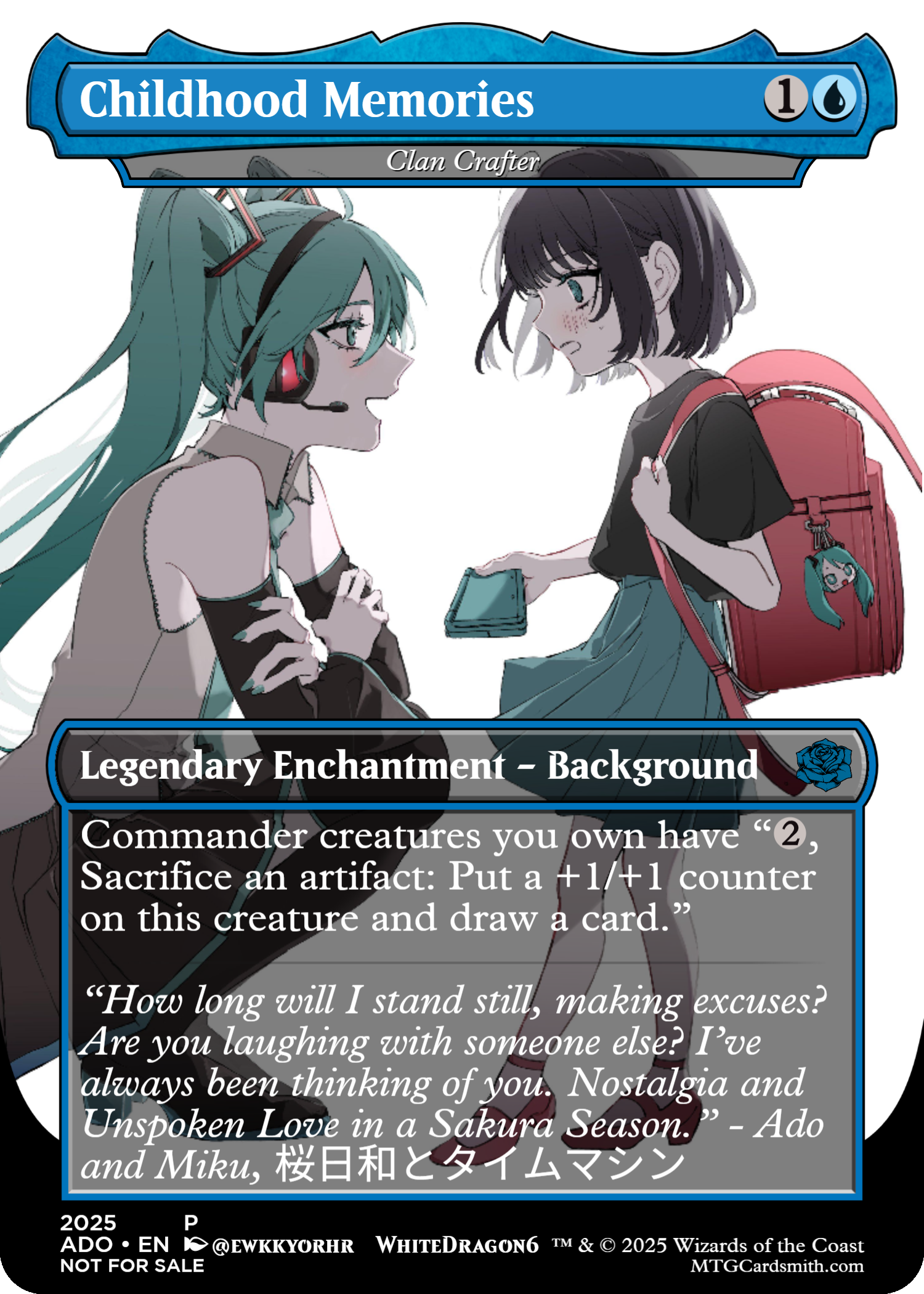 Commander creatures you own have ", Sacrifice an artifact: Put a +1/+1 counter on this creature and draw a card."