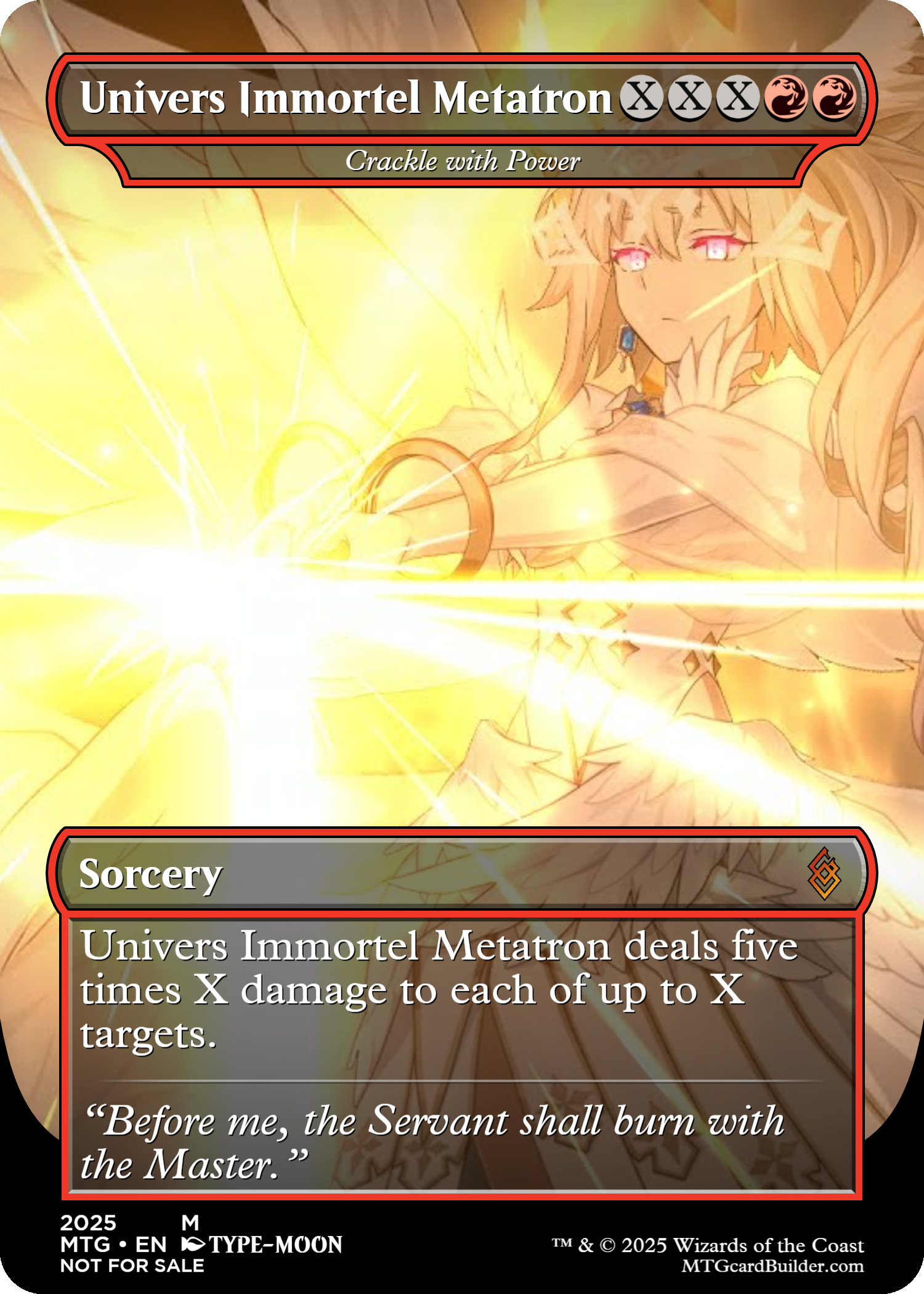 Crackle with Power deals five times X damage to each of up to X targets (creatures, players, planeswalkers and/or battles) .
