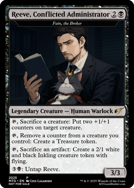 Fain, the Broker can make treasures, can make +1/+1’s, and can make little spooky boys. The best type of boys. Great utility and variety overall.