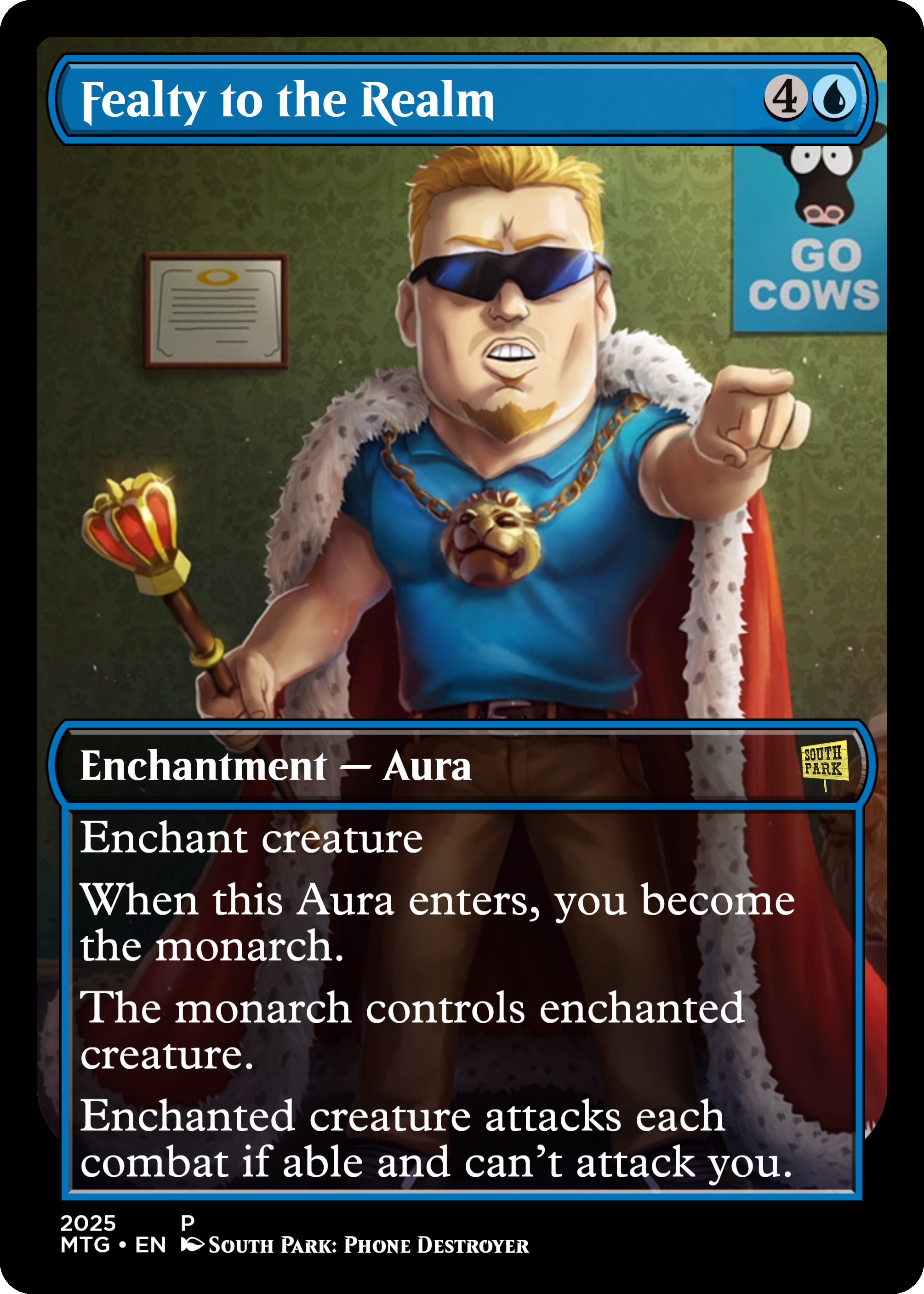 When Fealty to the Realm enters the battlefield, you become the monarch.