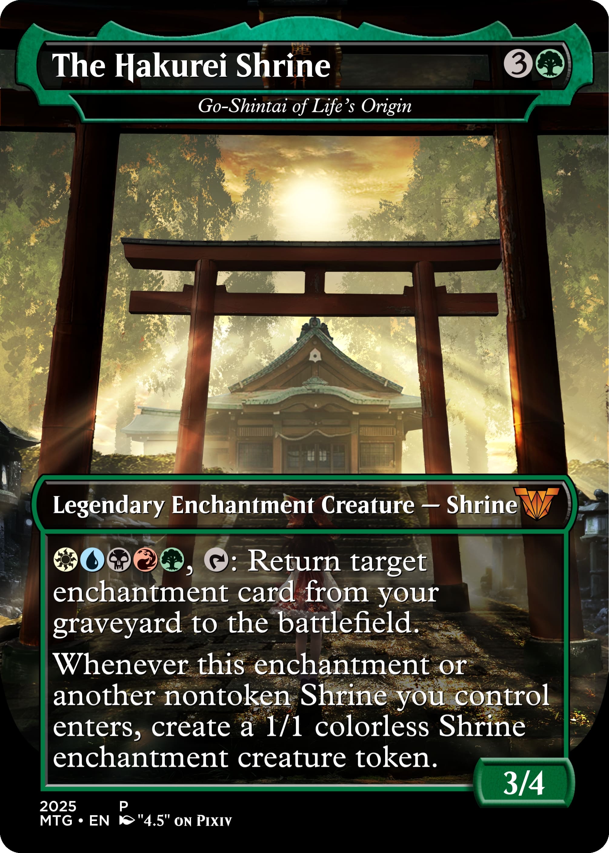 Whenever this or another nontoken Shrine enters under your control, create a 1/1 colourless Shrine enchantment creature token.