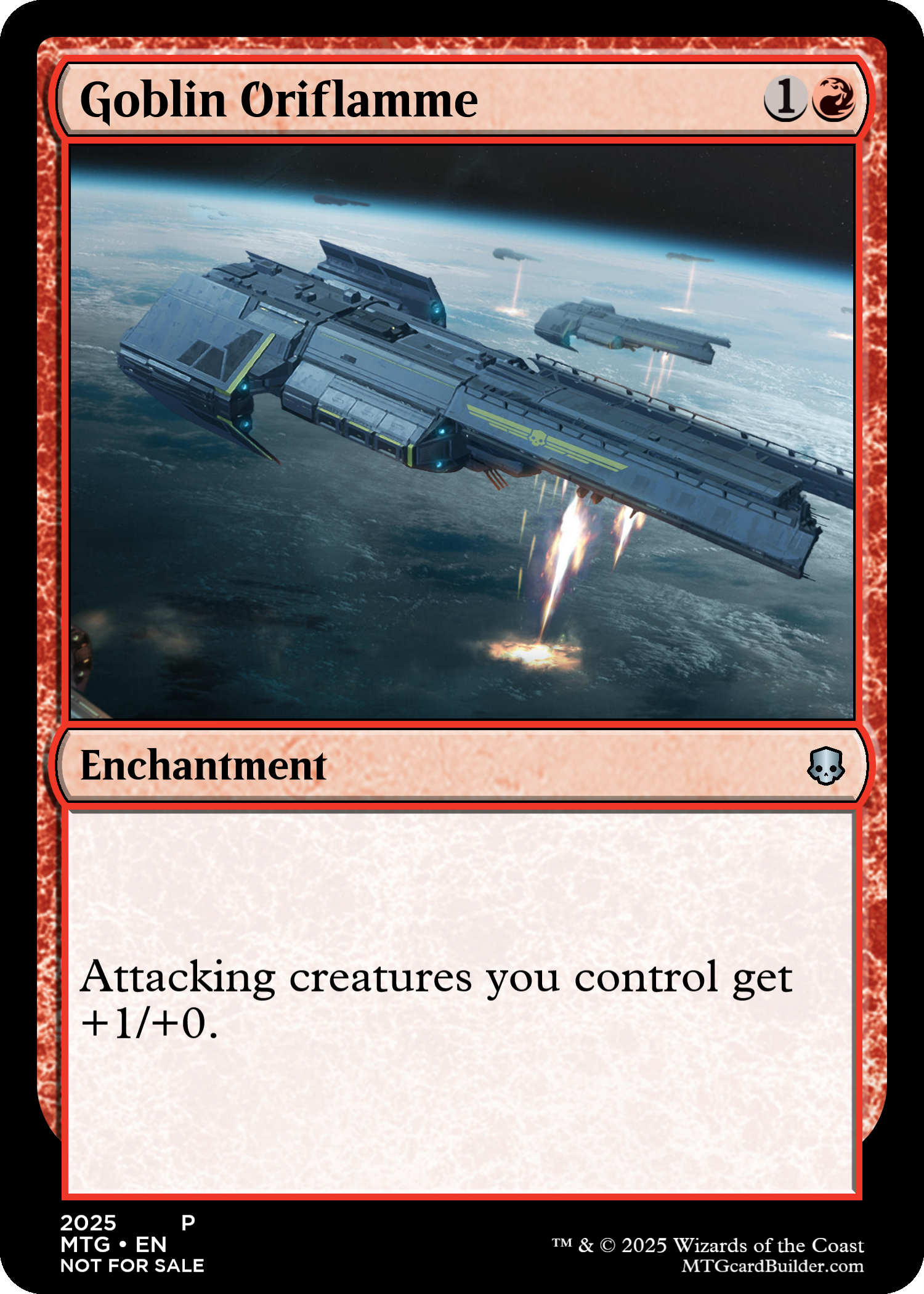 Your deck is great, as usual :) We would replace Goblin Oriflamme with Goblin Bombardment though. It will make opponents think twice about wiping your token force from the field. And if they still do it, that means you get to deal some damage because of it.