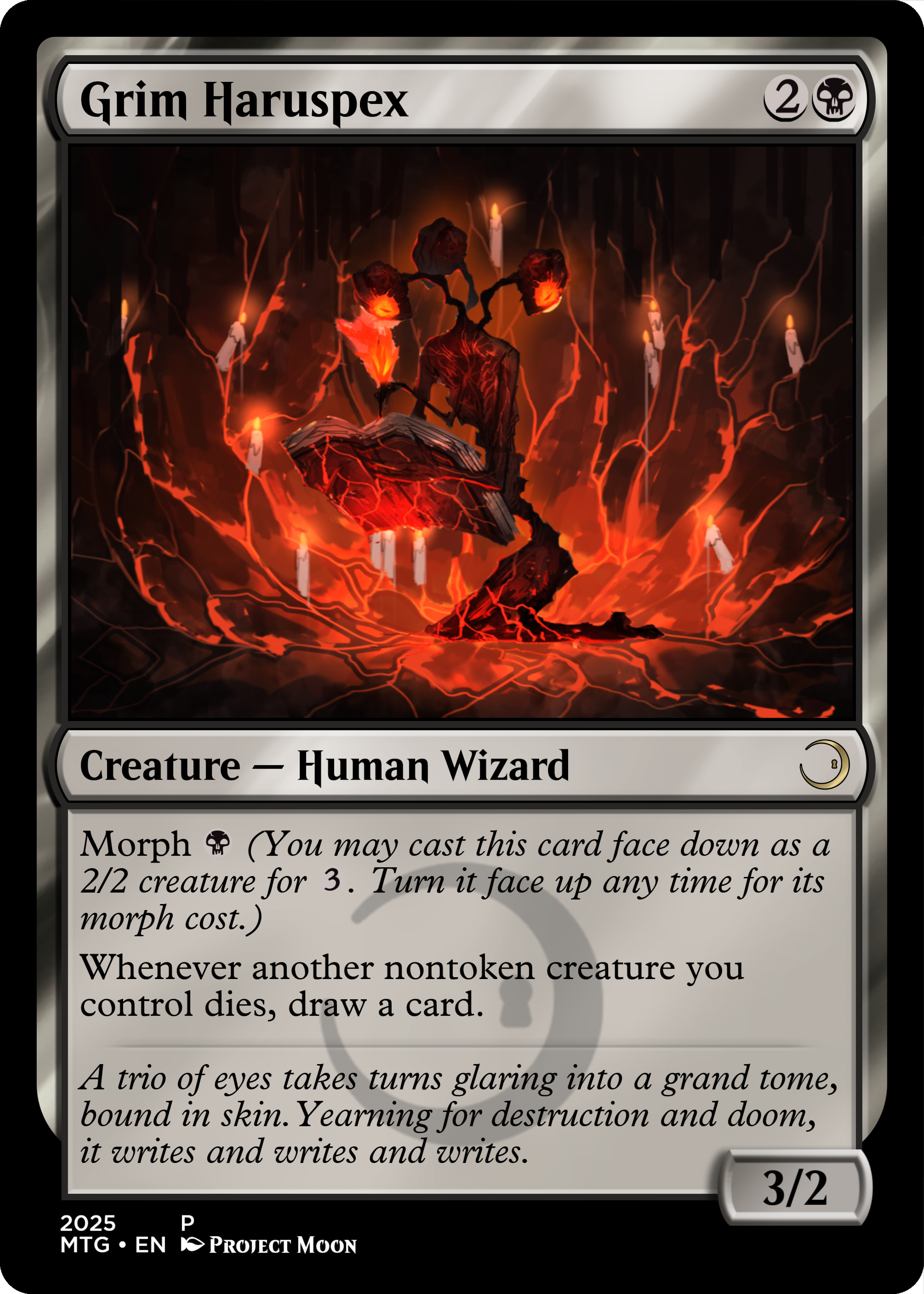 Thanks capwner. I’m pretty set with this for now, I’ve played a number of games with it and it does alright for how overly theme-y it is. I love Grim Haruspex though, and I’m adding that to the maybeboard right away—it’s incredibly on-theme and might be a decent addition in certain situations.