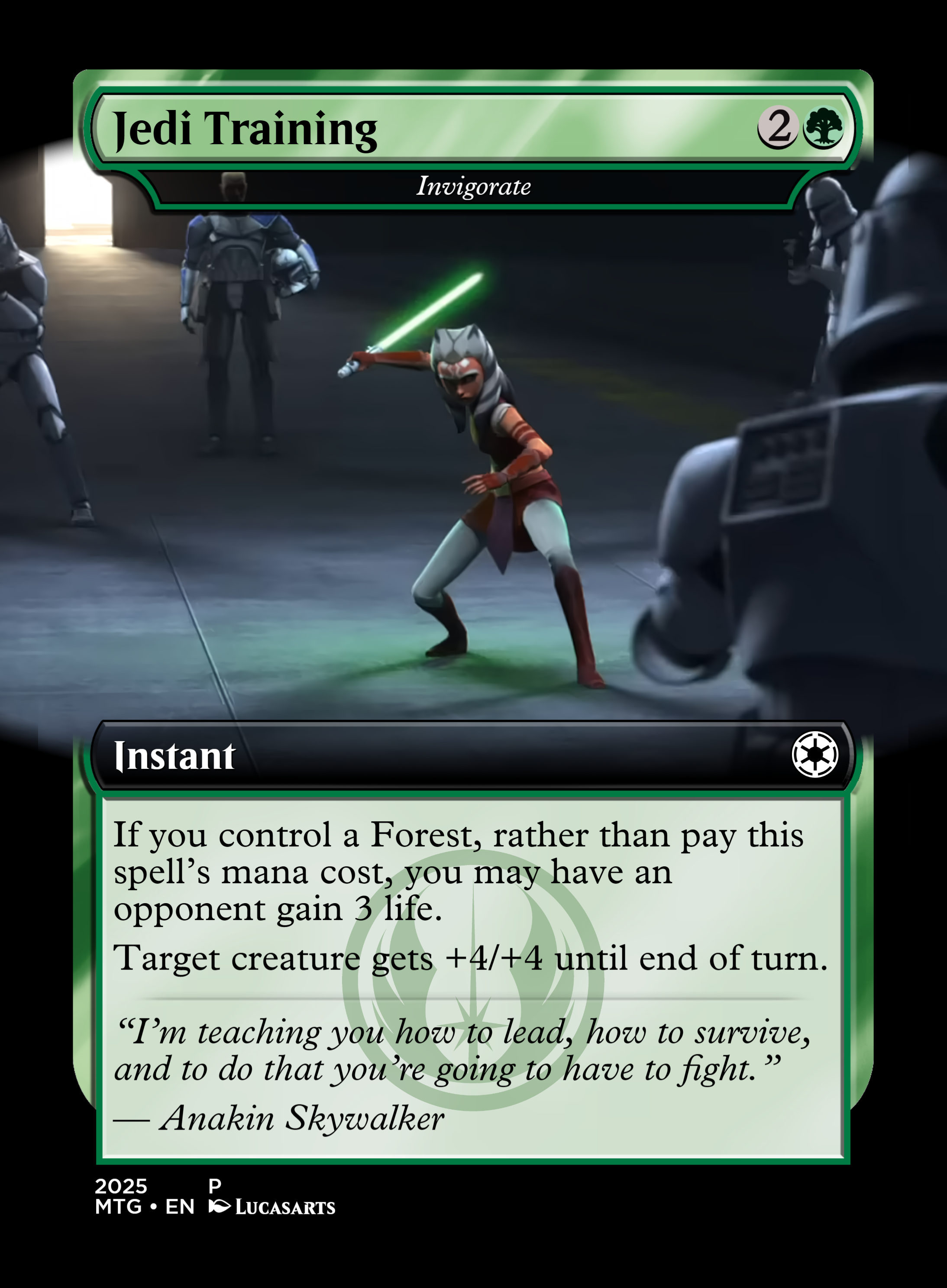 If you control a Forest, you may have an opponent gain 3 life rather than pay Invigorate's mana cost.