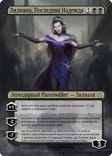 - Holds amazing synergy with his -X because when the creature ETB it'll be a zombie foe the emblem to copy