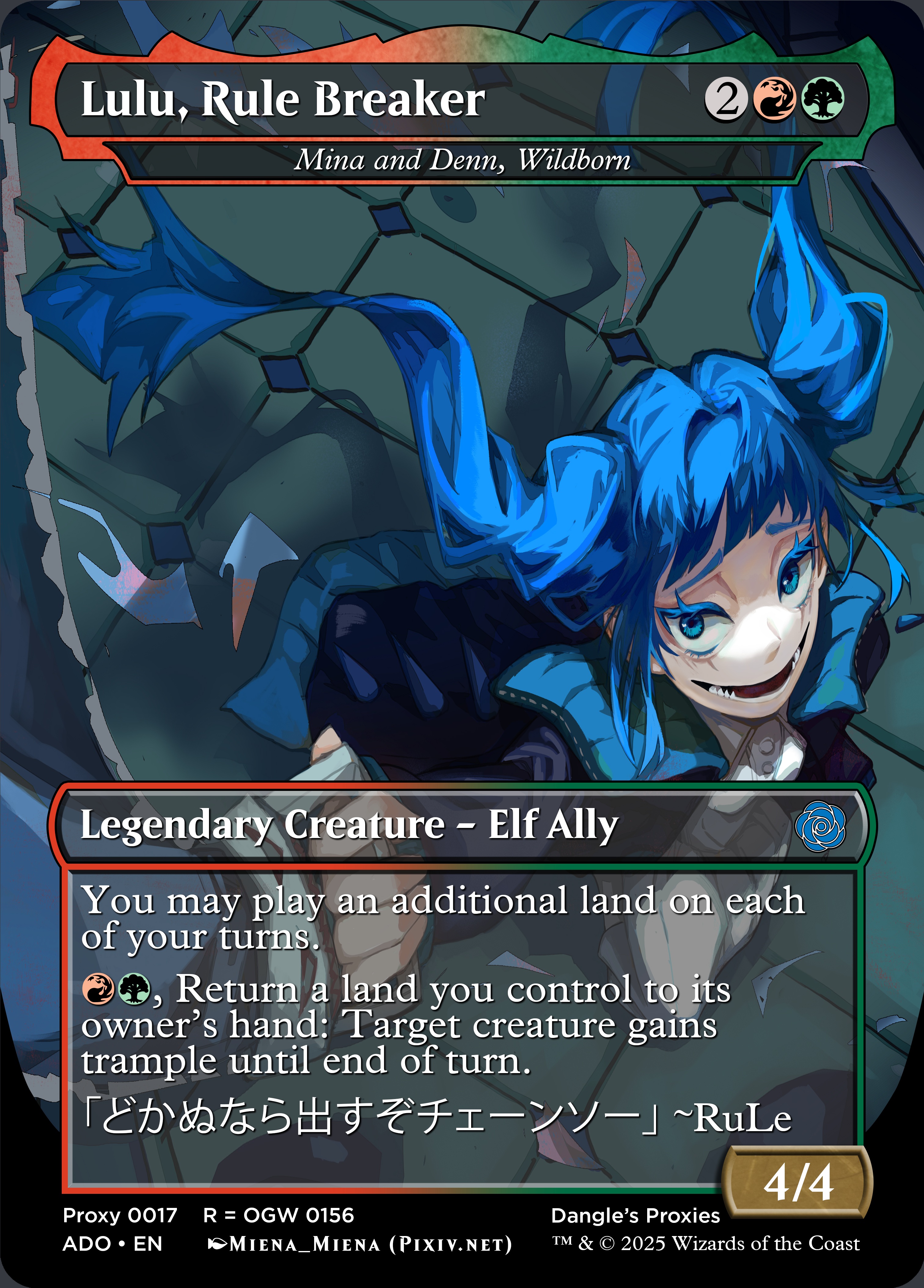 msanchez13: I'm sorry to hear about your Prossh deck! That really sucks to put so much time, money, and love into a deck, only to have some skeezeball take it away. I wish you all the luck in your journey to rebuild it! I really should slot Mina and Denn, Wildborn into this deck. I can see it coming in very handy...thanks for the idea! I know this deck will never be CEDH worthy, but the faster and meaner I can make it for my local meta, the happier I'll be. (lol)