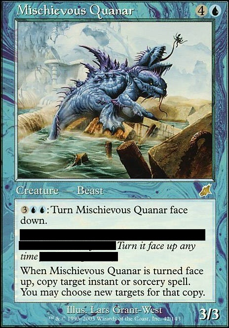 griffstick I'm so glad that more people are using morphs now. The amount of stuff you can get away with is so good. E.g Cast a spell, Stack a split second spell, then unmorph Mischievous Quanar to copy the spell and put it on top of the split second spell. Janky way to make spells uncounterable :P