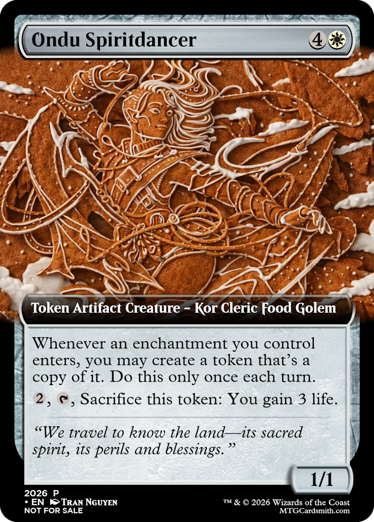 -Ondu Spiritdancer: With Myrkul, Lord of Bones and Grim Guardian on the battlefield, playing Ondu Spiritdancer and finding a way to kill it will infinitely ping all opponents to close out the game.