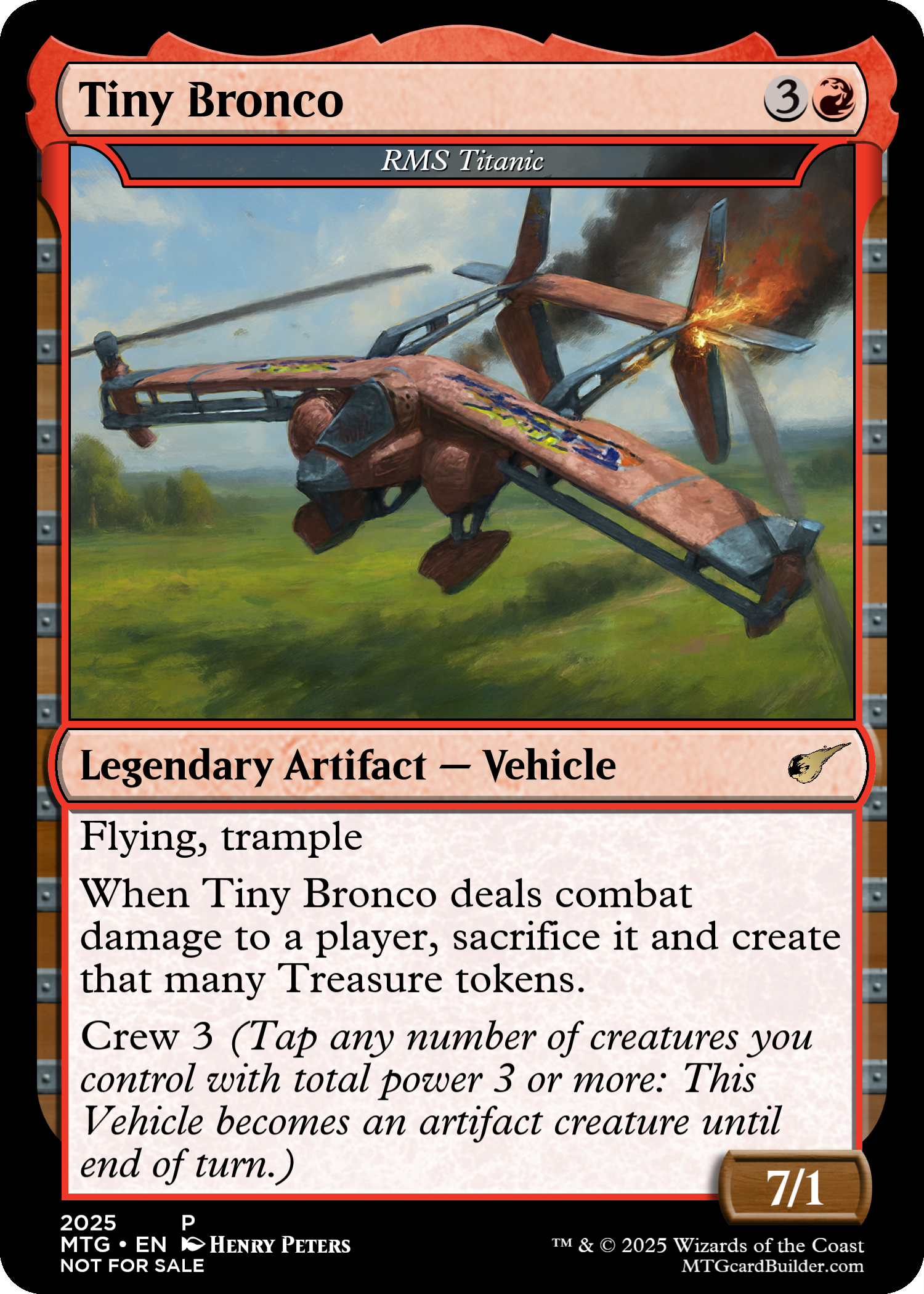 When RMS Titanic deals combat damage to a player, sacrifice ti and create that many Treasure tokens. (It's a colourless artifact with ", Sacrifice this artifact: Add one mana of any colour.")