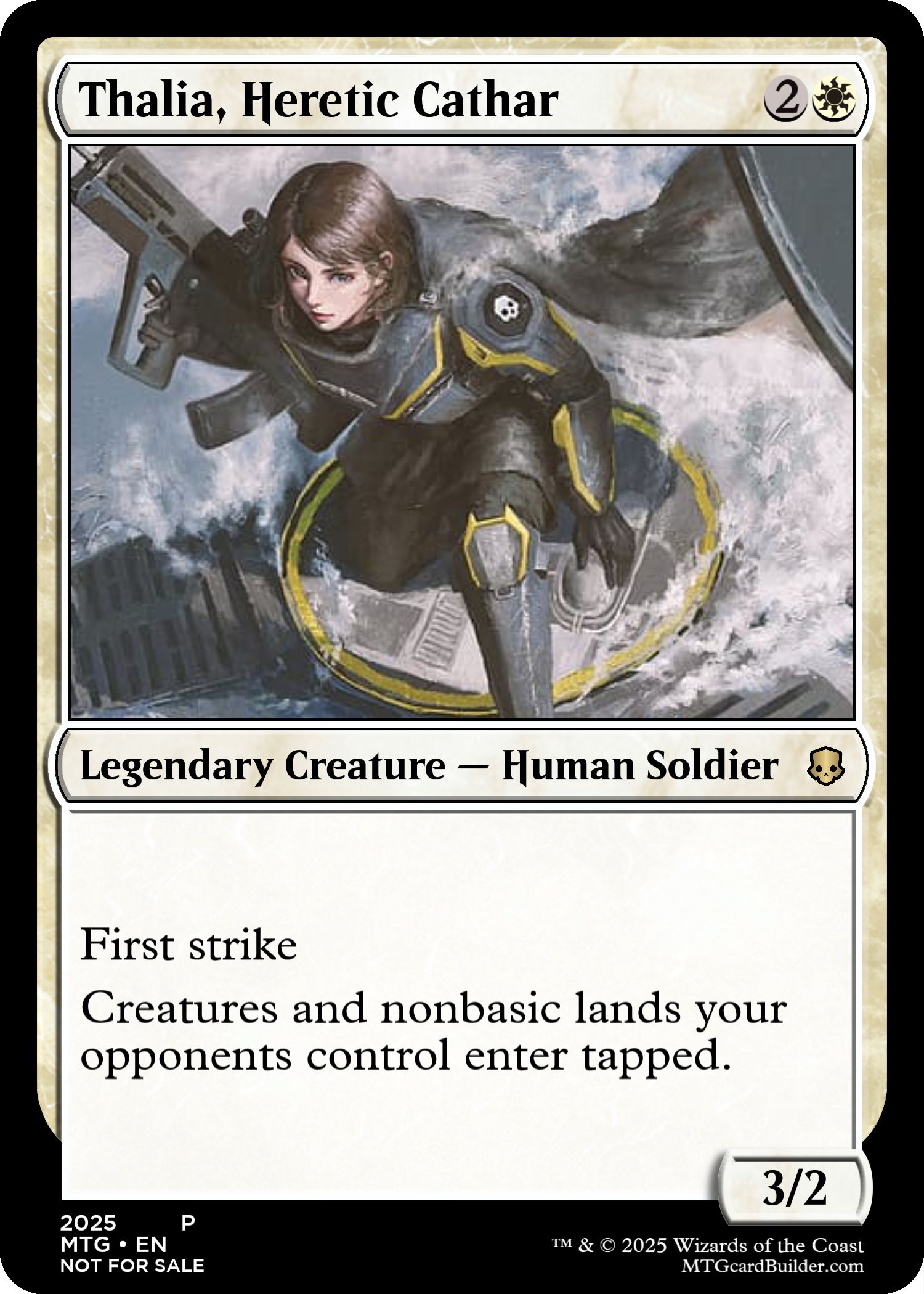- Thalia, Heretic Cathar is another fun "Stax" card, as is Authority of the Consuls.