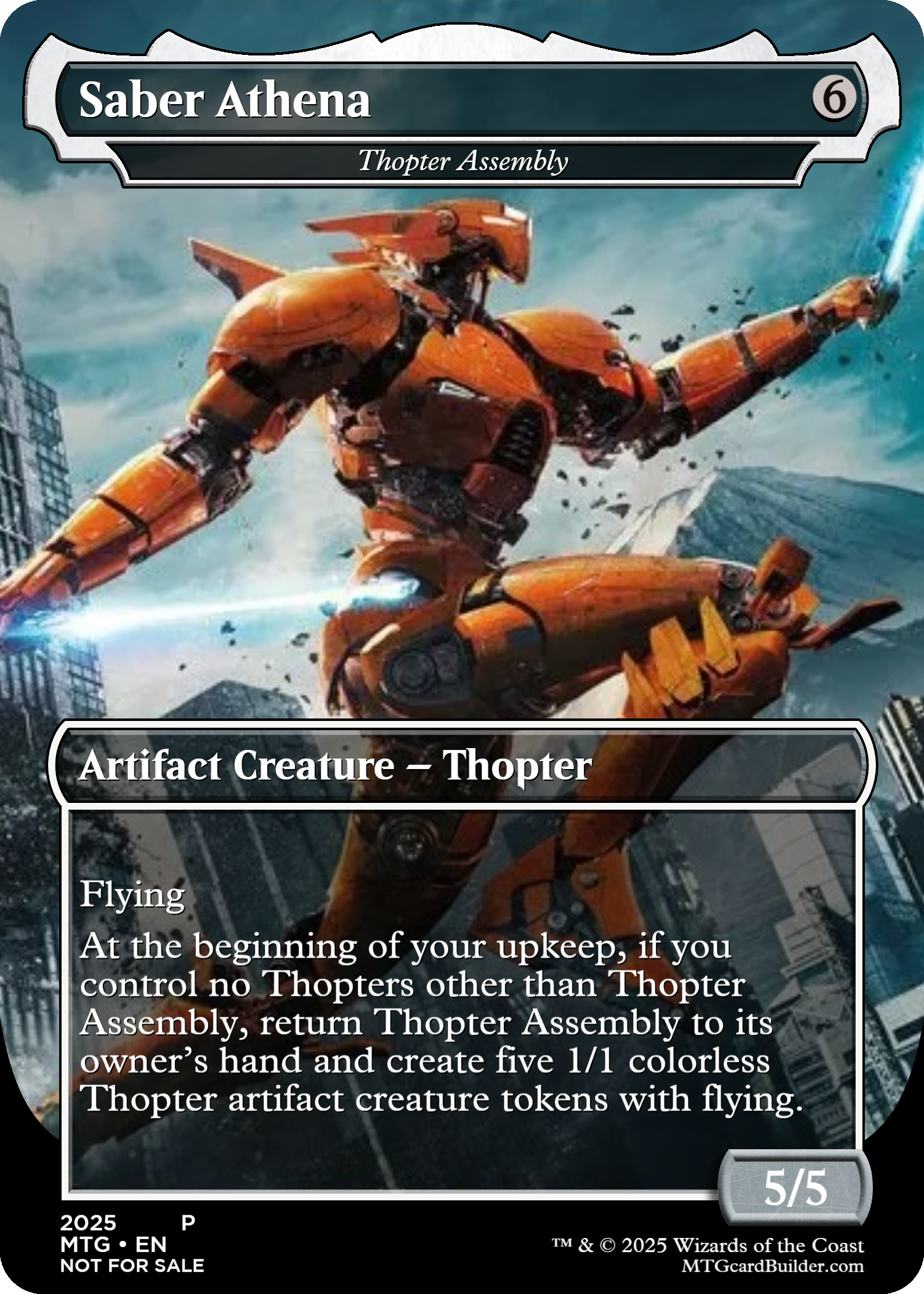 At the beginning of your upkeep, if you control no Thopters other than Thopter Assembly, return Thopter Assembly to its owner's hand and create five 1/1 colorless Thopter artifact creature tokens with flying.