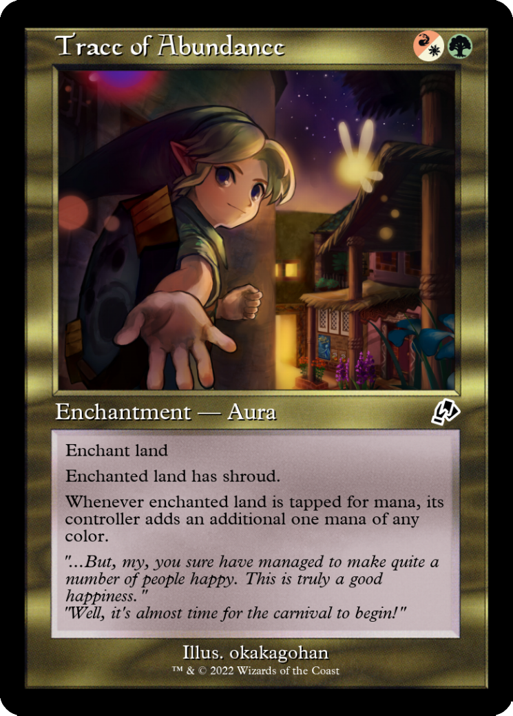 Whenever enchanted land is tapped for mana, its controller adds one mana of any colour (in addition to the mana the land produces).