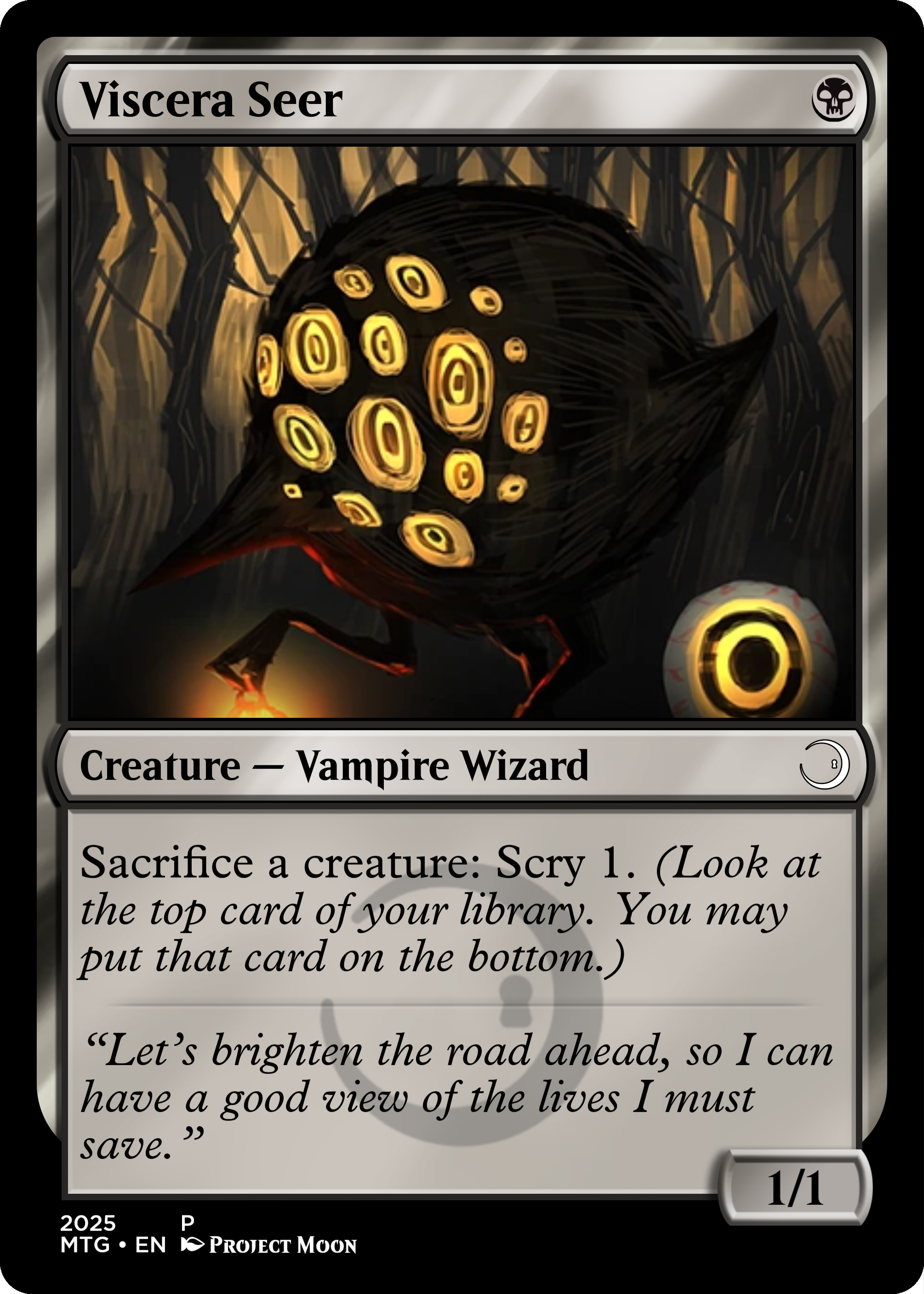 KayneMarco, I've been trying to shift the deck towards more +1/+1 counter and away from Aristocrats. The aristocrat creatures that I do have give themselves, or others, +1/+1 counters and scry selection with Viscera Seer. The other use they have is send creatures to the graveyard rather than exile when someone casts Sunfall (or another exiling wrath) so I want free sac outlets. I also have pretty bad luck with drawing lands in this deck and the can be hard to hold up sometimes. All that being said Dust Animus isn't really performing for bad luck reasons so I'll give Ayli, Eternal Pilgrim another chance.