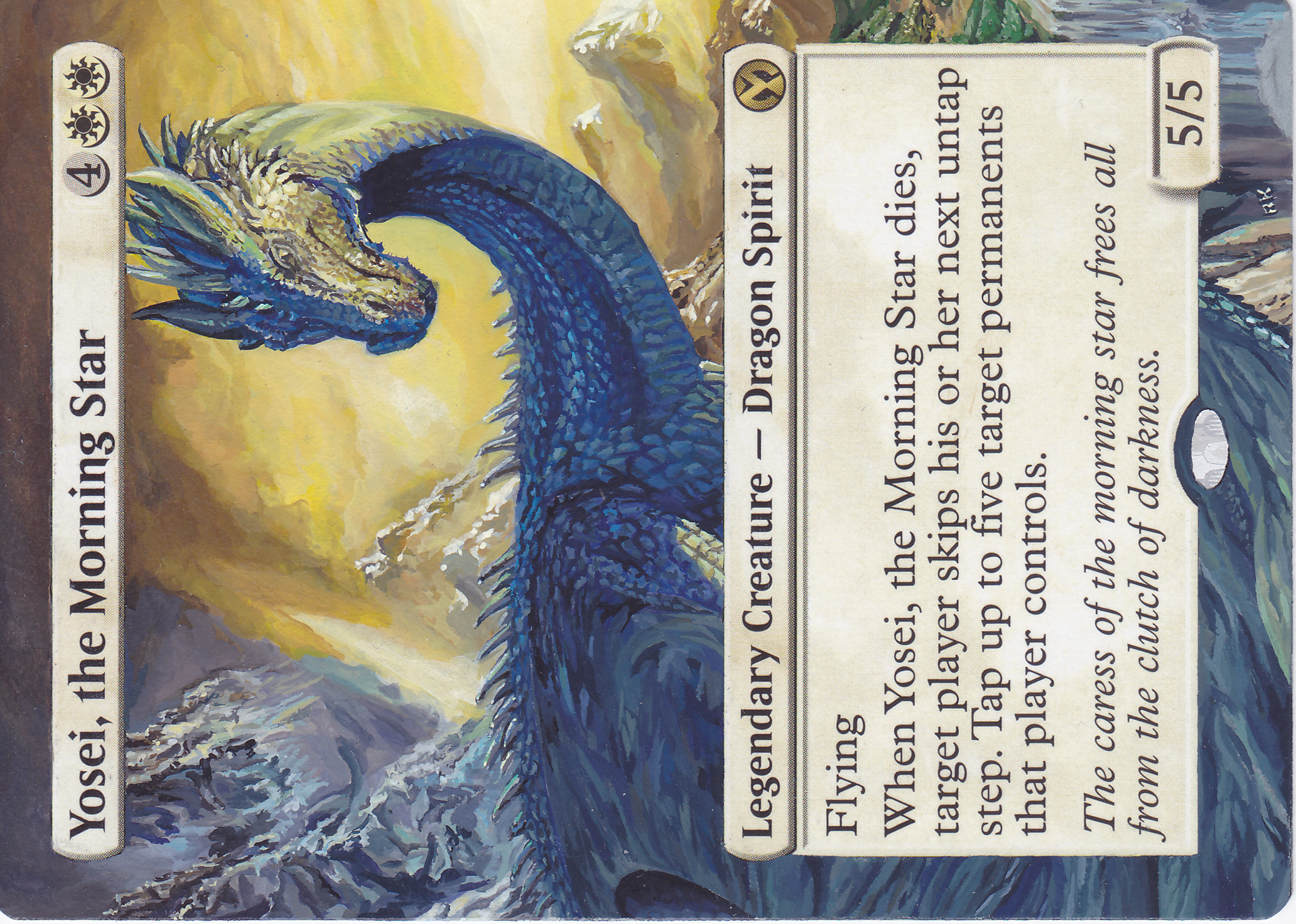 When Yosei, the Morning Star is put into a graveyard from play, target player skips his or her next untap step. Tap up to five target permanents that player controls.