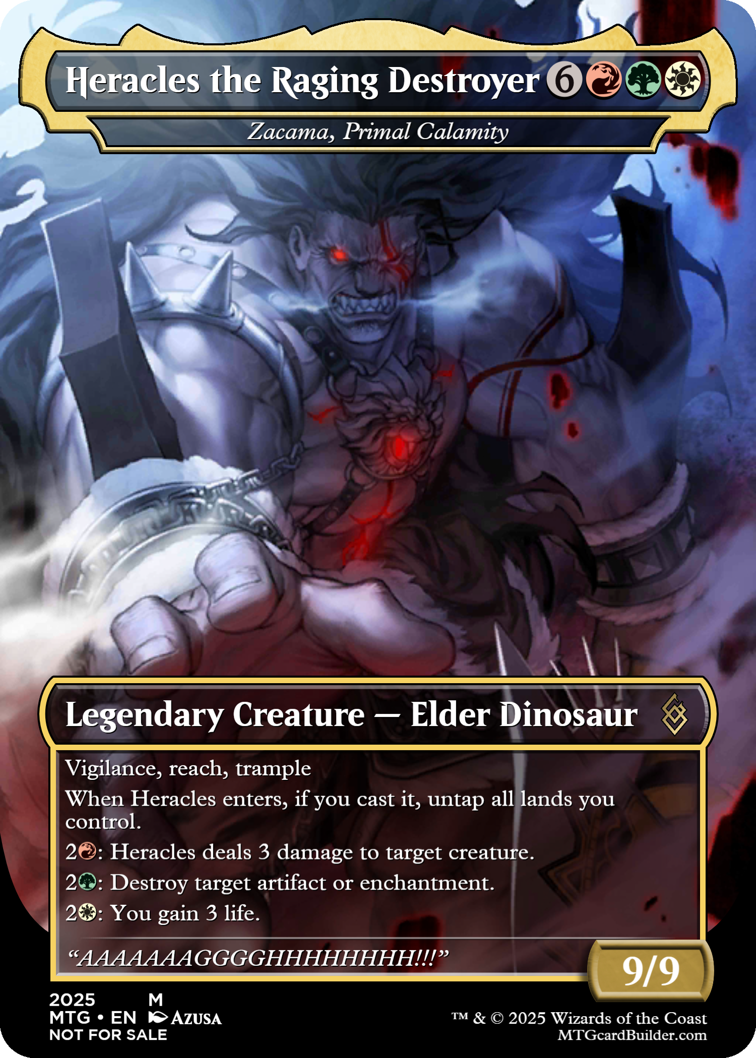 9 mana to cast a creature like Zacama, Primal Calamity is extremely steep. In modern most 6-7 cost creatures like Primeval Titan or Griselbrand just win the game immediately. Note also that in practically all formats you wouldn’t ever want to cast a card costing this much mana, because the cost its just too high. This card has the effects you should expect for something costing a whopping 9 mana.