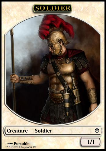 The other thing is, I would also recommend using pre-existing tokens. So instead of 2/2 soldiers and having to divide by 2, why not just use 1/1 Soldier (which already exists) and not having the player have to divide by two.