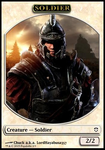 Well I did that because there aren't any current 2/2 Soldier tokens out there. If you wanted, I could create a 2/2 Soldier token for you, but it would just be better if you stick with the current token types.