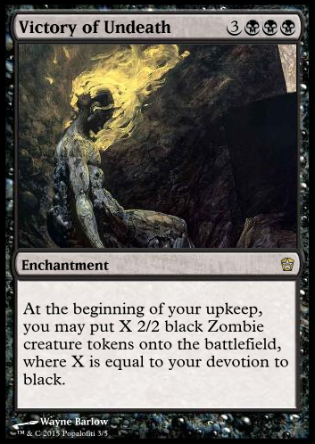 What are your thoughts on the Victory of Undeath putting X 2/2 black zombies into play? The X, Y, and Z are too many variables and checks too many things for it to be viable.